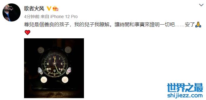 火风直言“尊儿是个善良的孩子,我的儿子我了解,让时间和事实来证明一切吧,安了。”后面还加了一个祈祷的表情,似乎再为儿子祈祷,力挺儿子。