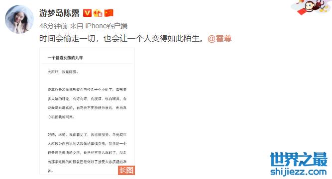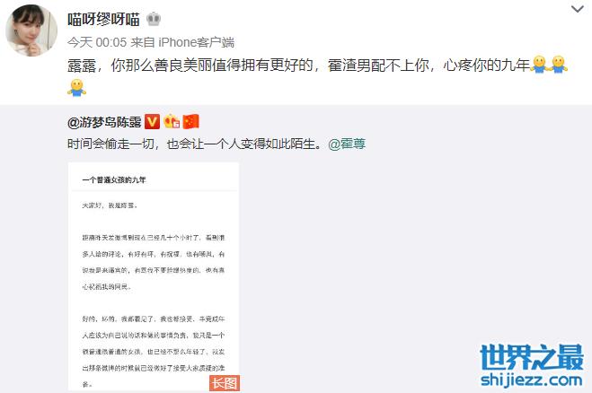 霍尊这边有父亲及好友力挺,而陈露这边也有多位好友为其发声,目前也只有等待霍尊的回应,两人的这段九年感情以如此结局收尾,还真是令人唏嘘。