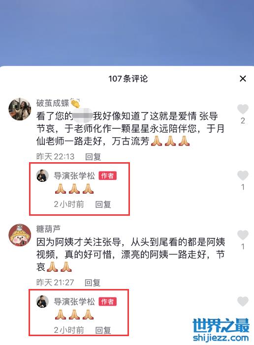 另外,在另一条视频动态下,张学松也同样回复了网友,该网友留言说希望他能够替月仙完成心愿,陪伴80岁的母亲白头终老,张学松让他放心,即便妻子离开了人间,他也会为岳母养老送终,不让老人家孤孤单单。
