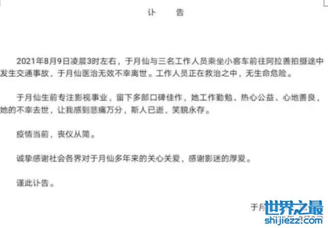 于月仙去世后,其圈内好友纷纷发文悼念,大家对这猝不及防的悲痛消息难以接受,丈夫张学松在9日也对外发布了讣告,对于妻子遭遇不幸他万分悲痛,丧事将一切从简,感谢各界对于月仙的关心以及影迷的厚爱。