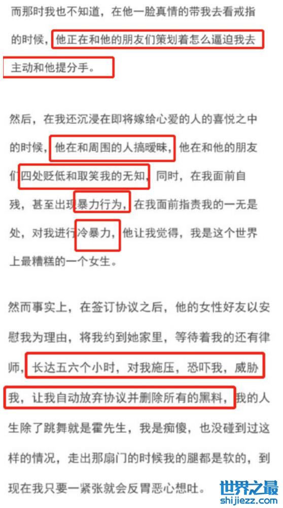 陈露发现,霍尊在和自己谈恋爱的时候却仍在和另一个女生搞暧昧,并且还在私底下贬低陈露,称其无知,对陈露进行暴力行为,甚至提出给钱让陈露离开并且删除黑料的要求,目前两人的事件还在持续发酵中。