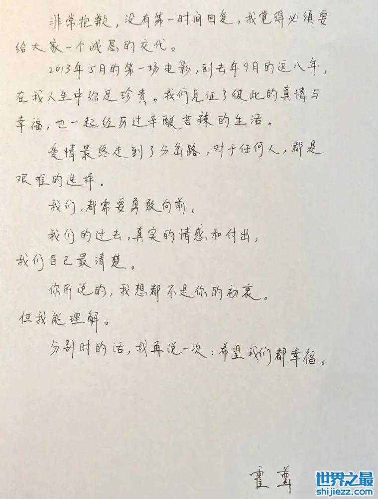 而刚刚,霍尊本人终于出来回应,工作室晒出他的手写回应长文,霍尊首先道歉,然后承认了和陈露的8年感情,两人2013年在一起,去年9月分手。但关于陈露说的900万协议以及被霍尊朋友恐吓坐牢这些事,霍尊一个也没有回应。