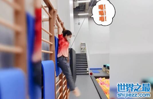但是呢,我们的奥运冠军郭晶晶也是调皮,做了几下动作后直接去健身了,说是要做跳水前的热身准备。视频里,郭晶晶身体背靠在运动器材上,双手抓住单杠开始“空中折叠大法”。