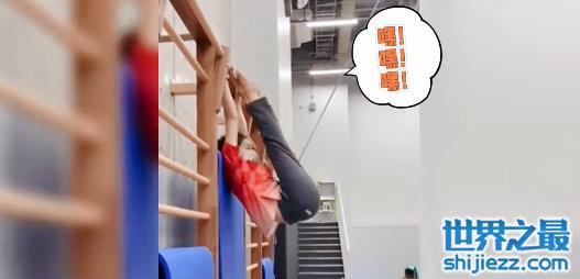 郭晶晶用双臂和腹部的力量,将双腿向上伸直,直到脚背完全靠在了器材上。这个动作身体柔韧性不强,或者力量不足的人很难呈现出来。但郭晶晶一口气做了十几个,且每个动作都很完美,没有丝毫偷懒敷衍。
