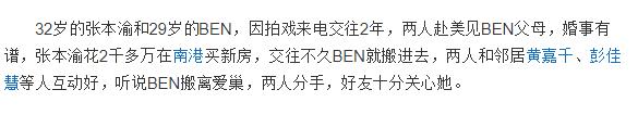 交往2年后,阿Ben带着女友去国外拜见了父母,而张本渝也斥资400多万(人民币)买下了一栋新房,和男友同居。外界都以为,二人好事将近。