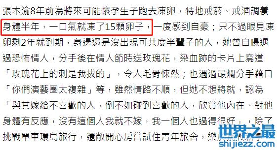 如今45岁的张本渝依旧是单身,渴望结婚生子的她,已经冰冻了15颗卵子,希望有一天能遇到合适的人,一起生儿育女。