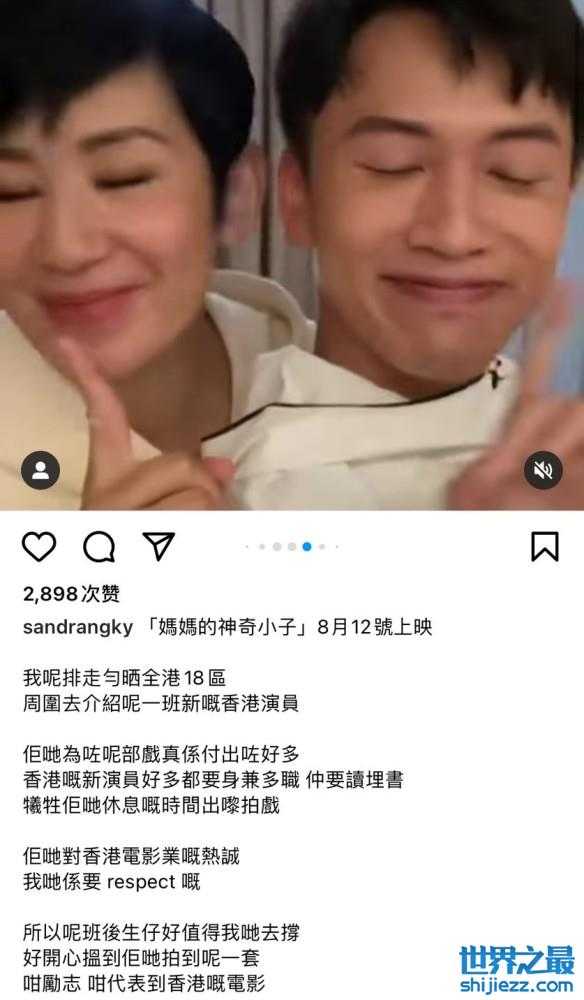 除了亲昵合照外,还有吴君如戴着口罩,和新人男演员梁仲恒的同框。吴君如一头短发,显得很干练。