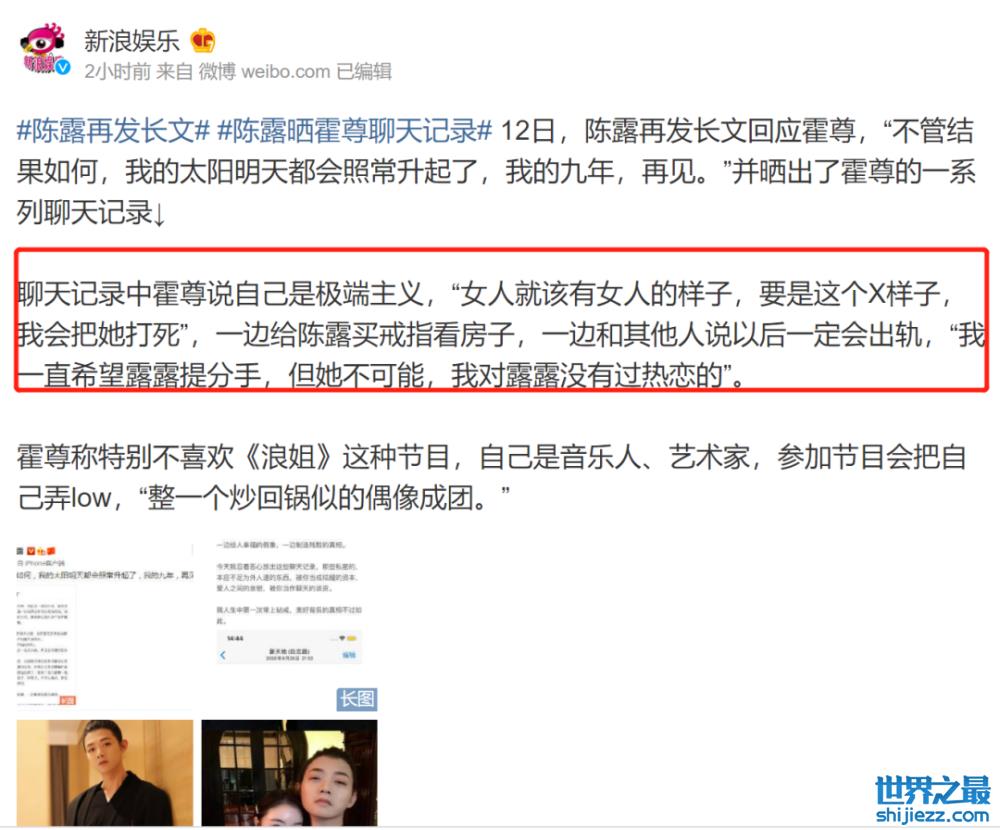 陈露晒出霍尊聊天记录,油腻满满的内容实在是太毁三观了。