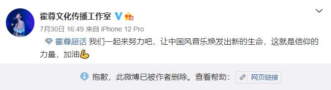 而翻看霍尊的微博账号,此前他转发的多条动态目前也已经被删除,只留下了他的转发评论,可以确定的是,在霍尊曝光出负面新闻后,这些平台迅速删除动态与其划清界限,这其中包括权威很高的《文旅中国》、《新华网》。