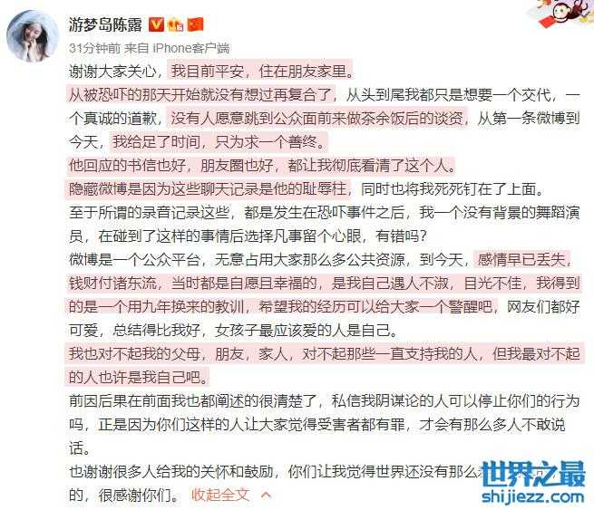 陈露晒聊天记录后报平安,曝霍尊朋友圈向她道歉是真的,没有想过再复合了 ...
