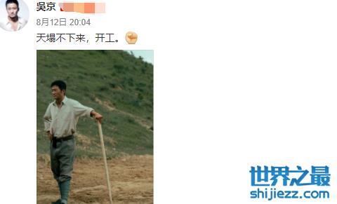 近日,吴京在个人社交平台上分享自己的工作照,并配文:“天塌不下来,开工”,并配上一个加油鼓劲的表情包,可见吴京刚好准备工作。