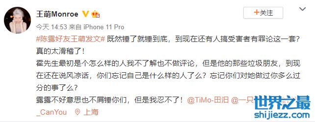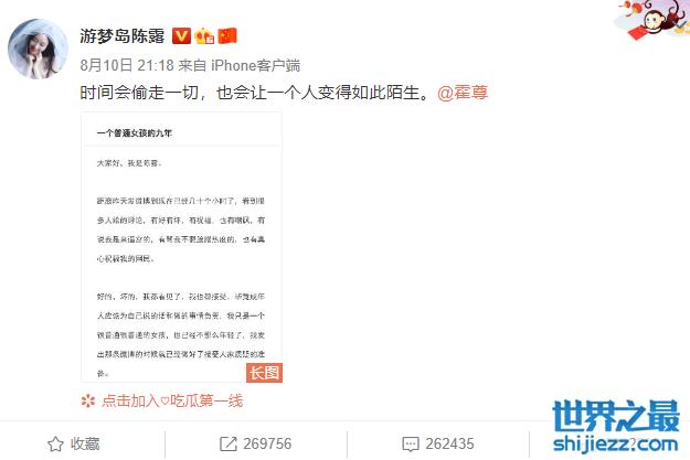 这时很多网友都以为这是准备要官宣了,但是没想到的是霍尊那面却了无音讯,让陈露唱了一出独角戏,很多网友都开始冷嘲热讽。但是事情却并没有结束,没有得到回应的陈露接着又在网上发表了小作文,内容几乎可以说是毁三观。在网友眼里那个对人斯文有礼,唱歌很有韵味的霍尊在陈露的文里成了一名不折不扣的渣男。