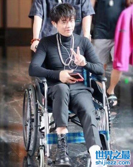 凤凰传奇曾毅受伤,坐轮椅出行左脚打石膏,坚持工作不耽误玲花 ...