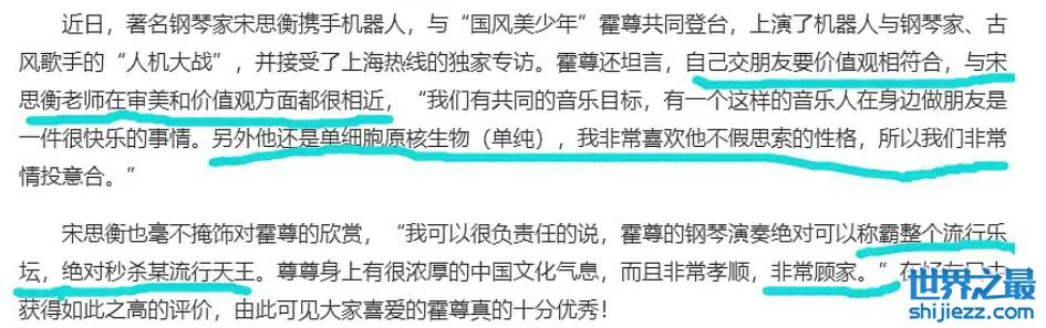 宋思衡和霍尊私下里关系也很好,他曾经夸赞霍尊的钢琴演奏绝对可以称霸整个流行乐坛,秒杀某流行天王。