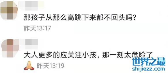 令人意外的是四岁的安麟独自爬上一米高的墙体,直愣愣地往下跳,差点仰头摔倒,十分令人心惊。