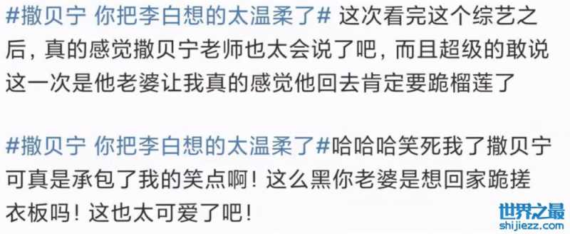 网友在评论底下纷纷议论,调侃撒贝宁回家想被李白拿搓衣板伺候,也从调侃窥探出撒贝宁的家庭生活确实美满幽默。
