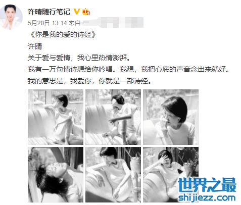 而在工作之余,许晴会四处旅行散心,分享生活中关于爱的感悟,如“关于爱与爱情,我心里热情澎湃。”