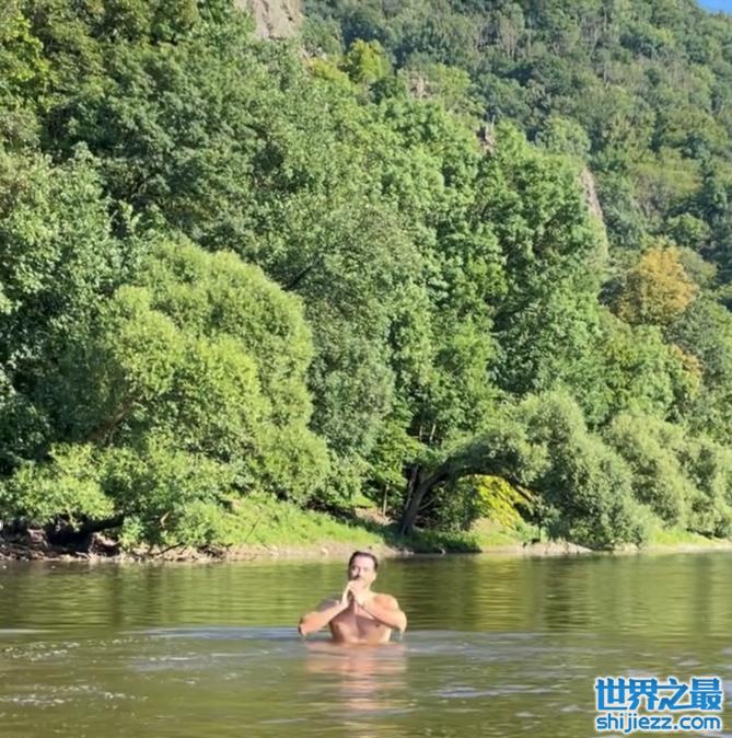 游到尽兴之后,奥兰多从河中站起,露出自己一身健硕的肌肉,棱角分明线条明显,阳刚气十足。