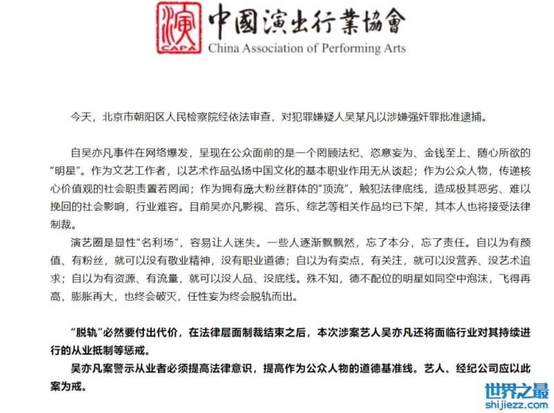 中国演出行业协会也发文,作为公众人物,应该传递核心价值观的社会职责置若罔闻,作为拥有庞大粉丝群体的“顶流”,触犯法律造成极其恶劣,难以挽回的社会影响,行业难容。