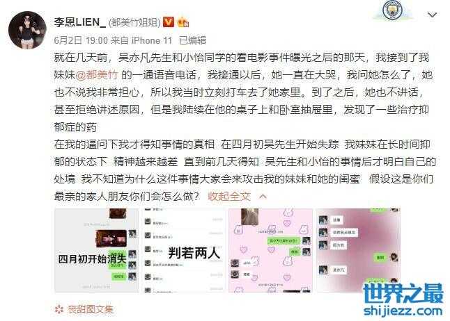 随后,李恩在微博发文:“已解禁,谢关心”。半月前,都美竹否认李恩是姐姐,称二人没有血缘关系,以及阻止过李恩发文,之后李恩的微博被禁言。如今,吴亦凡正式被捕后,李恩官宣微博解禁。