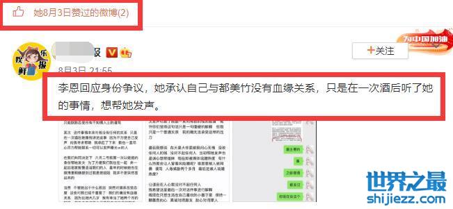 同时,李恩点赞了两条关于都美竹否认她是姐姐的微博,不过是关于自己从来没有蹭热度之意。