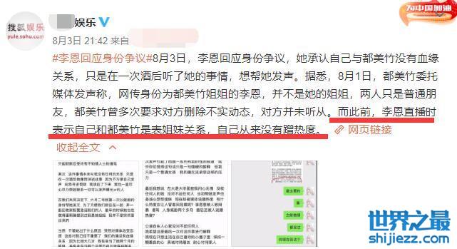 都美竹否认李恩是自己姐姐后,早已取关了李恩,但关注着另一位朋友“刘美丽同学”。一开始,她们三个人关系很好,不过现在都美竹早已取关李恩,看得出都美竹想要撇清和李恩的关系。