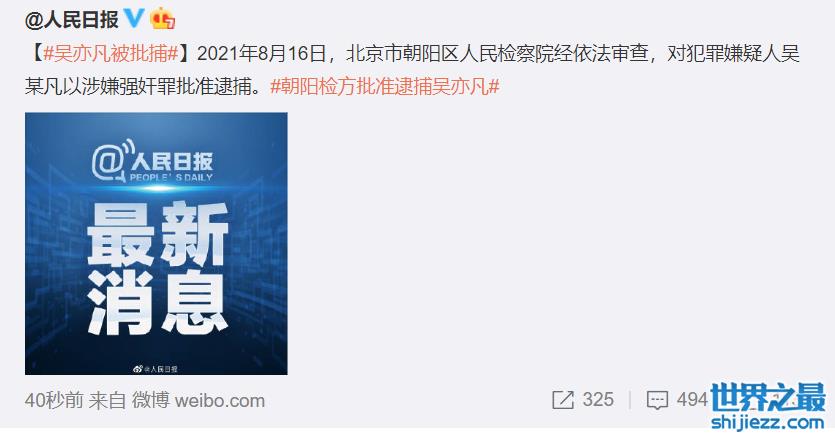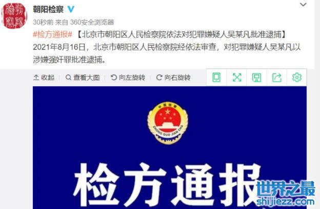 8月16日晚,北京市朝阳区人民检察院经依法审查,依法对犯罪嫌疑人吴亦凡批准逮捕。