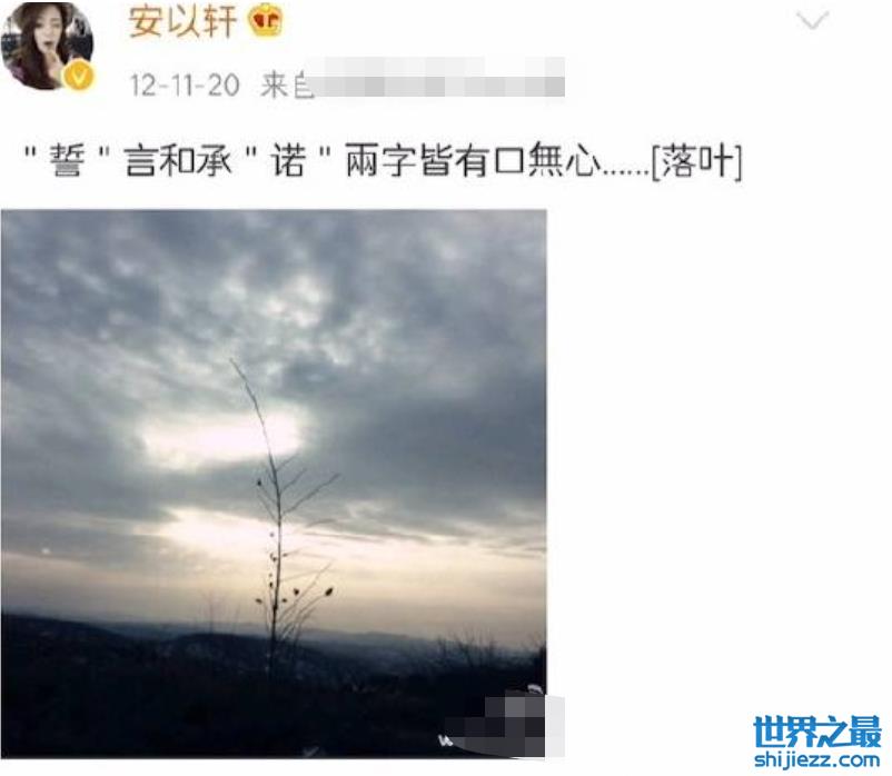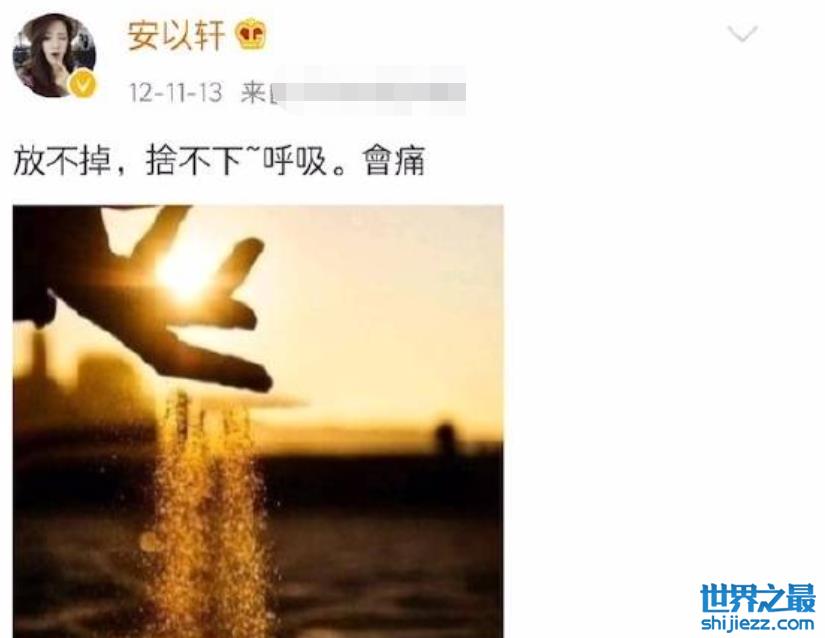 从安以轩在社交平台上的动态来看,她也的确是从11月时才开始发表各种带有失恋情绪的内容。