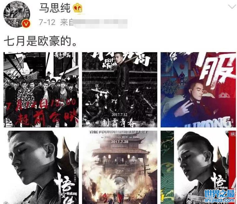 一方面是祝福欧豪七月上映的多部电影能够票房大卖,但另一方面也是在表白:自己是欧豪的。