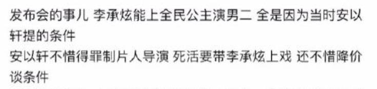 坊间也一直有传言说,安以轩为了让李承铉能拿下这个男二,还不惜降了自己的片酬来谈判。