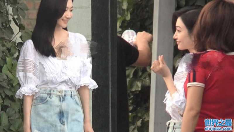 景甜室外拍照现场曝光,穿超短裙露白皙美腿,一旁男助理忙拿风扇 ...