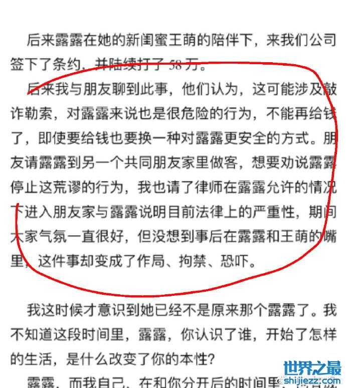 前几天,火风的一位好兄弟,也就是霍尊的叔叔发文,称陈露不是坏人,受了别人利用,同闺蜜一起对霍尊进行敲诈。霍尊在回应中也提到,陈露和闺蜜王萌一起出现在他公司楼下,签下条约,并打了58万。