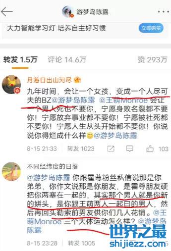 在陈露整个锤霍尊的过程中,王萌确实出了不少力,二人私下关系确实非常好。王萌一直极力维护陈露,并帮陈露去攻击霍尊的好友田汨等人。