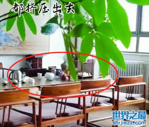 办公室里的家具都是红木制作而成,长形的茶几也同样如此,旁边配有四把椅子方形红木椅子,桌子上茶具品类各种各样,有紫砂壶也有金属壶,光是茶歇区看起来价值不菲。