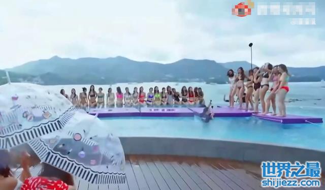 另一位穿蓝色泳装的佳丽就显得勇猛许多,走到最后一块浮板的时候直接跑了起来,径直扑向终点的两位佳丽。旁边观看的佳丽也纷纷为她拍手叫好,甚至有的人张大了嘴巴看着她,觉得难以置信。