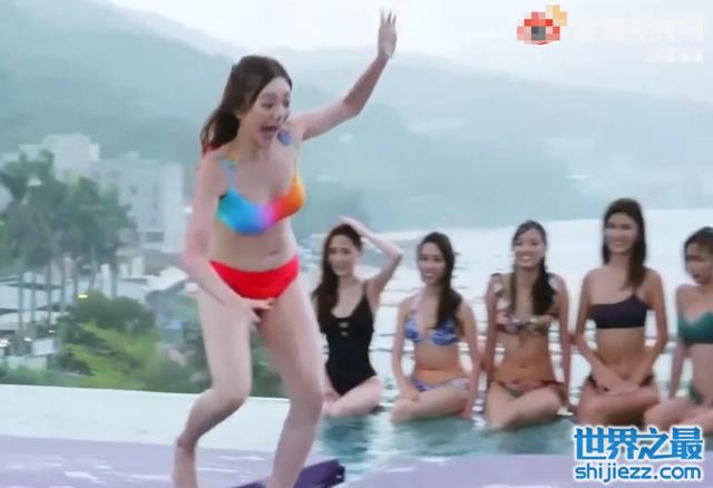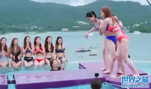 港姐佳丽穿性感泳装玩游戏,秀傲人上围大长腿,走水上浮板险跌倒 ...