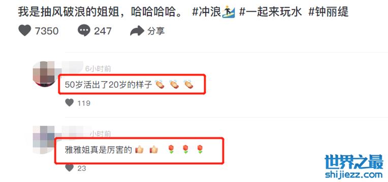 钟丽缇还在配文中自我调侃道是抽风破浪的姐姐。但网友们却纷纷表示,钟丽缇虽然50岁,但这样的状态,活出了20岁的风采,非常厉害。