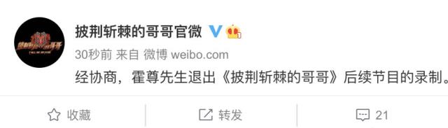 而后,《披荆斩棘的哥哥》以及《拳力以赴的我们》才宣布霍尊因个人原因退出节目录制,可以确定的是,这份官方抵制声明一出,这两档节目才选择与霍尊结束合作。