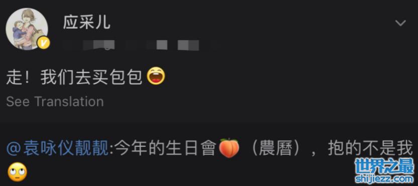 照片发布后,应采儿回应袁咏仪称一起买包去,看上去是因为发现张智霖抱着自己的老公而吃醋了。