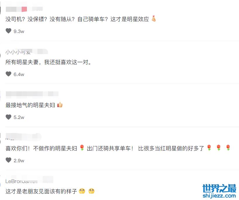 夫妻两人现在长期在内地生活,日常的交通工具,并不是大家印象中的高级豪车,而是路边上随处可见的共享单车,两人的出行方式,不仅省钱还环保,不得不说这对夫妻实在是接地气。