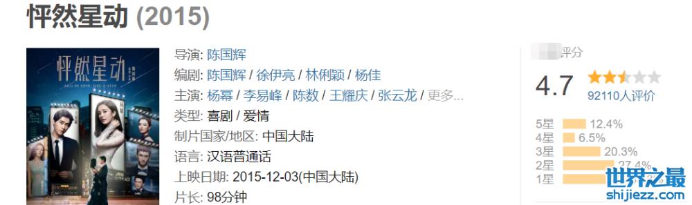 无论是和李易峰二搭的电影《怦然星动》,还是《亲爱的翻译官》,或者是《爵迹》系列,评分都没能达到及格线。