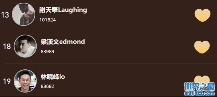 剩下的“大湾区”成员谢天华、梁汉文以及林晓峰分别是13、18和19名,也处于中间的位置。这3位在过去并没有太多在内地露过脸,能够有这样的排名算是挺不错的了。