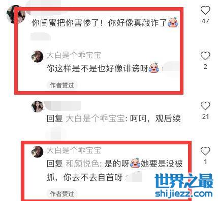 对于陈露是否被闺蜜王萌利用一说,她也在另一社交账号给出了自己的回复。有一位网友对陈露说:“你闺蜜把你害惨了,你好像真敲诈了”,这时陈露好友“大白是个乖宝宝”立马怼回去:“你这样是不是也好像是诽谤呀,她要是被抓,你去不去自首呀”,陈露点赞好友的话,力证她和闺蜜王萌感情好着呢,丝毫没有受网络上的舆论影响。