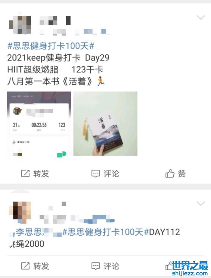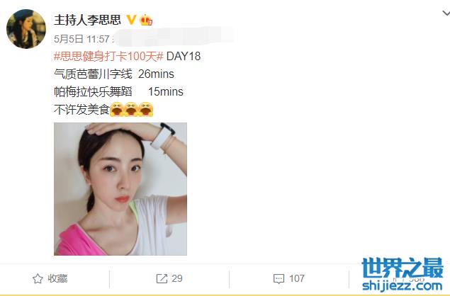 在李思思的社交平台里,出现频率最多的就是她的健身打卡记录了,在打卡内容里,也能多次看见李思思勤于练习舞蹈的记录。
