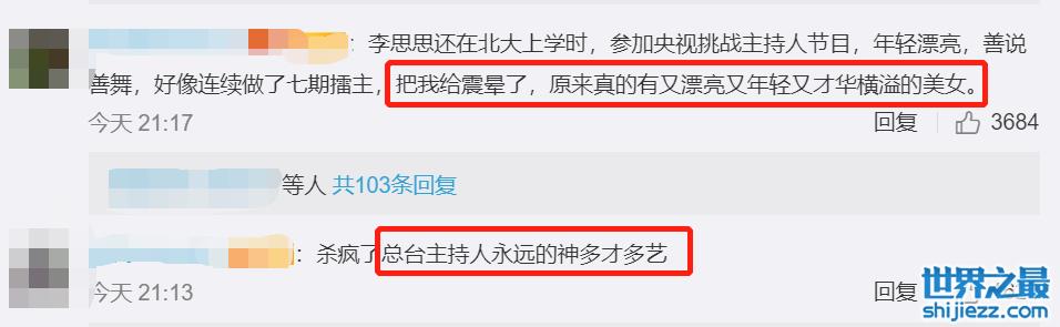 网友们也纷纷感慨,“这段应该是本场最佳了,思思yyds”“把我给震晕了”“总台主持人永远多才多艺”。