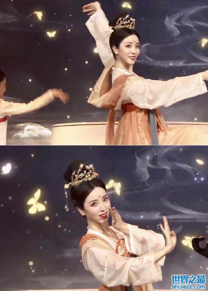 在当晚央视主持人们合作的《左手指月》舞台上,李思思也是以唐妆汉服亮相,和着乐曲从容而舞,形舒意广,舞蹈之美,甚至登上了当晚热搜第一。
