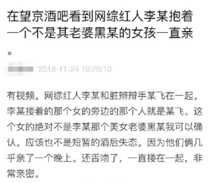 2018年年末,又有人拍到了李诞在酒吧跟其他女性有疑似不妥的举止。