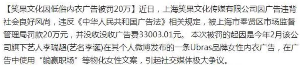 无独有偶,李诞今年也对内衣广告有过失言,被罚款了。