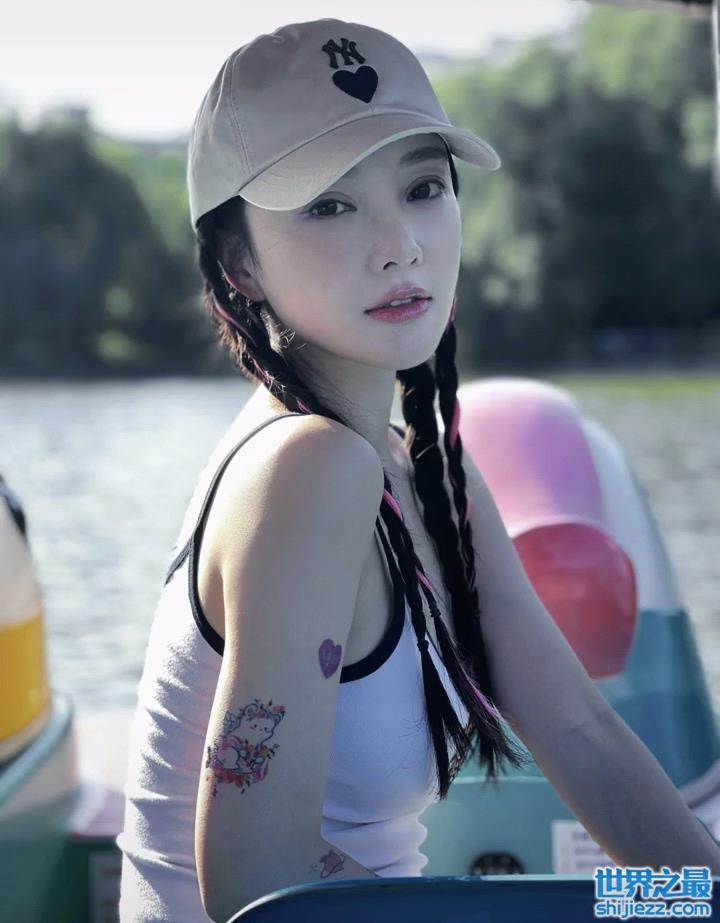 照片中,李小璐画着精致妆容,对着镜头摆出各种拍照姿势。她手臂彩色纹身十分显眼,大致看出来是一些卡通人物的样式,还有小爱心点缀。
