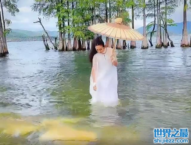 63岁杨丽萍近况曝光,下水摘花裙子湿一半,一身白袍撑伞仙气飘飘 ...